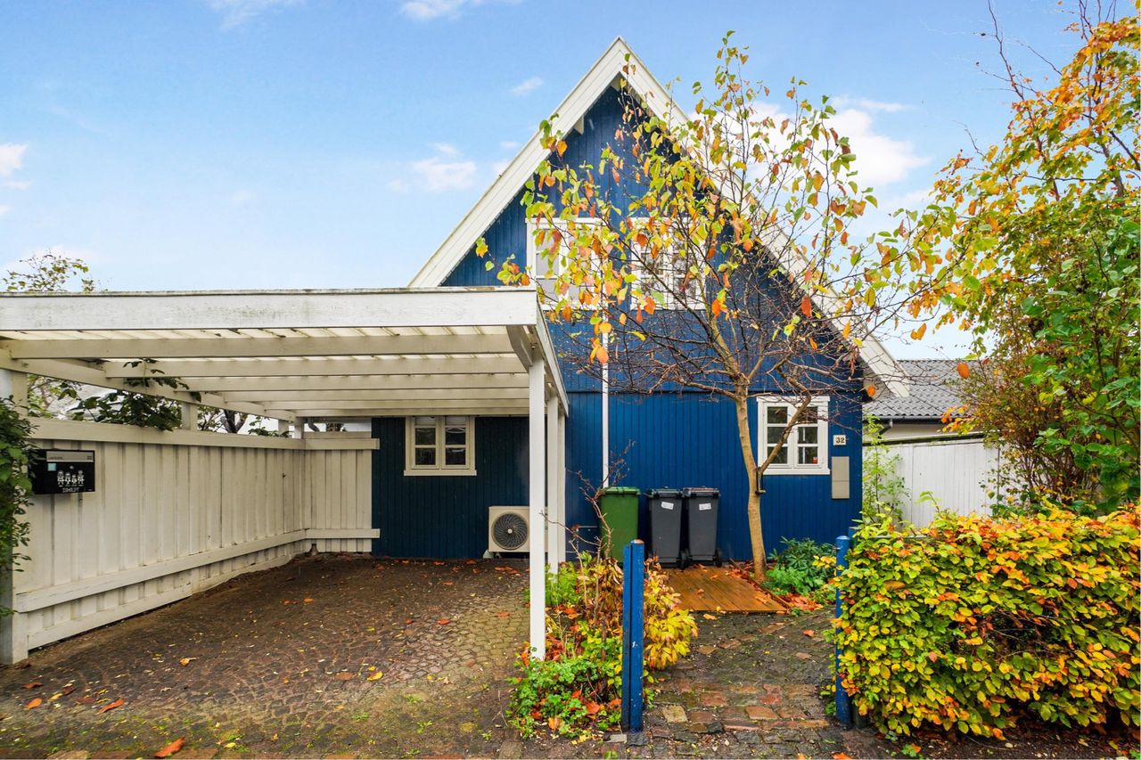 god planløsning. Grunden tæller 200 kvadratmeter, og den er anlagt med carport, grøn beplantning samt